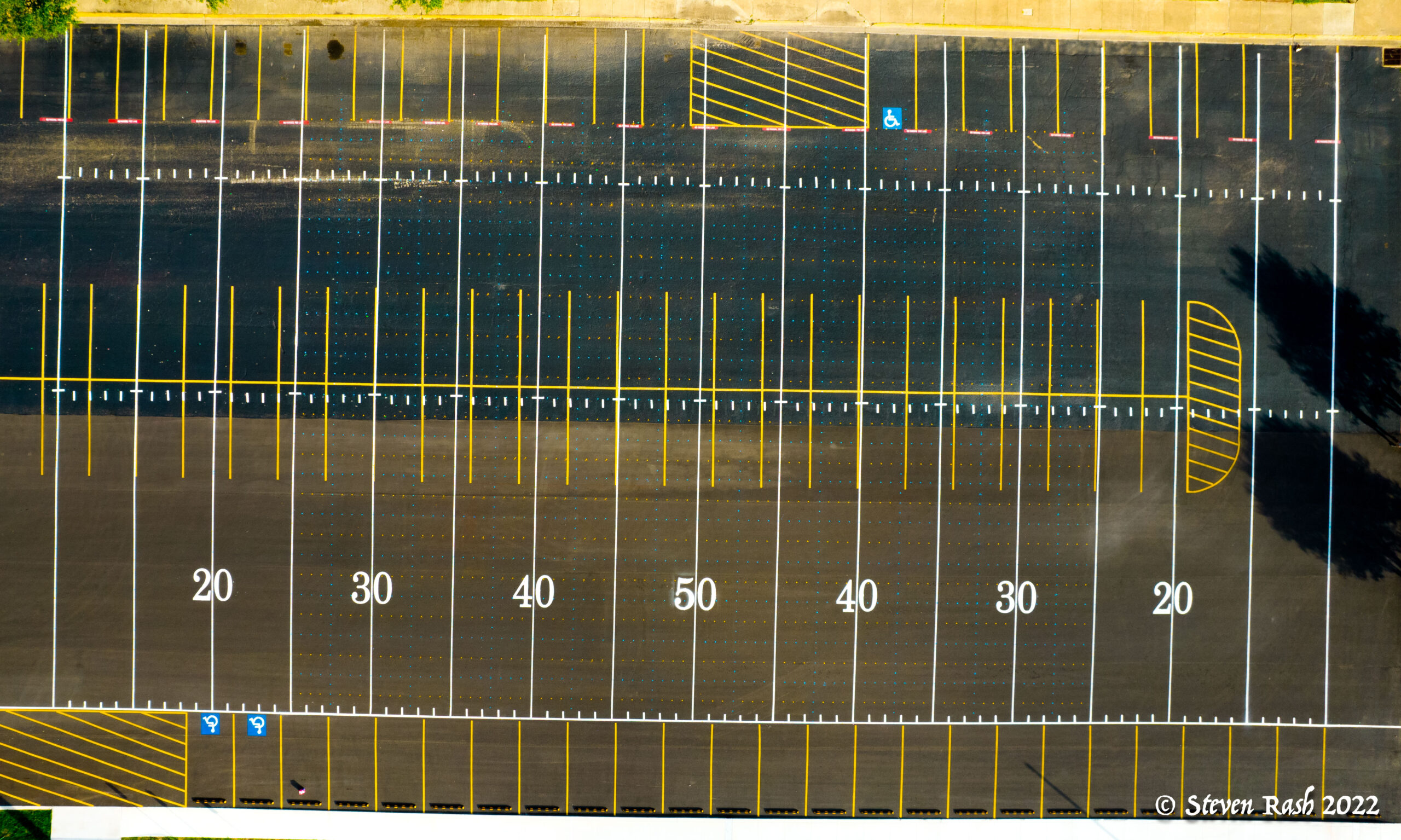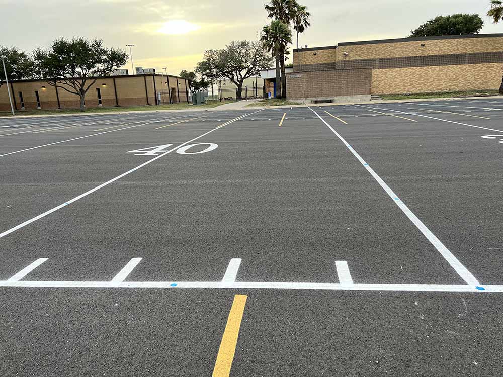 - Rolling it: Many companies that paint parking lot spaces roll it out with a brush and roller. It’s an option if you’re careful with string, but I don’t find it easy. This also will not work well if you have older asphalt with lots of loose rock.