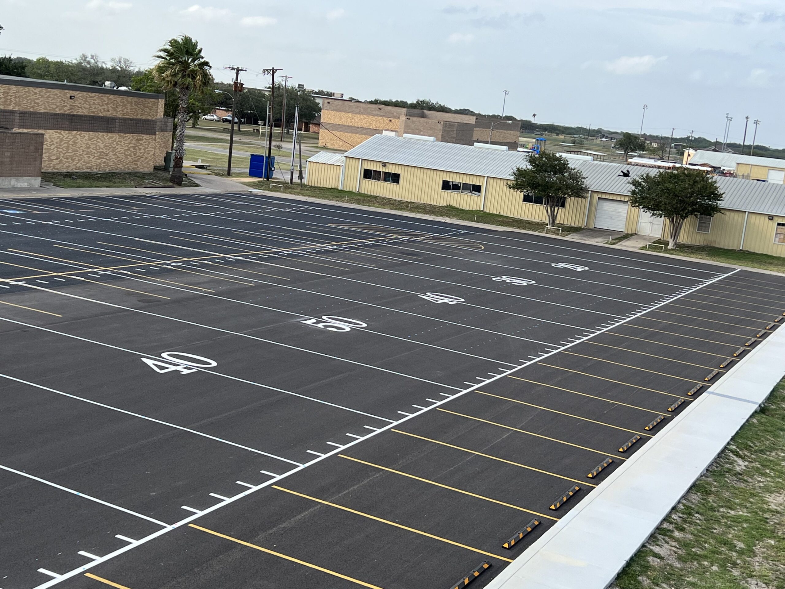 Most schools have asphalt available in some shape or form, but some don’t have it lined off. In 2022 our school resurfaced our lot and we had the opportunity to start from scratch on the new surface. We took advantage of that this summer to re-line/dot the field. I know many people find the process intimidating, but other than time, sweat, and paint, it doesn’t need to be. This tutorial aims to walk you through the process from start to finish. Please feel free to reach out to me if you have questions that I don’t answer. For our field, in Texas we use NCAA hashes, so the measurements given will be consistent with those. You may search online and find the HS hashes that some states still use.